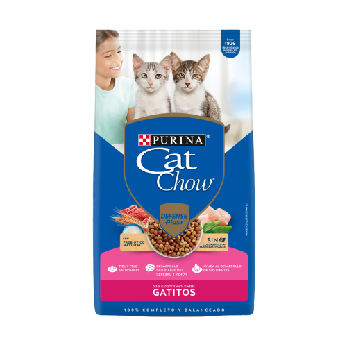 Purina® Cat Chow® tiene todo lo que tu gatito necesita. Con prebióticos naturales y sin colorantes artificiales. Esto ayuda a promover un sistema inmune fuerte para proteger a tu gatito desde sus primeros días.
