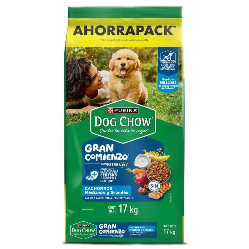 HEMBRAS GESTANTES: A partir de los 40 días de gestación, suministrar la misma cantidad de PURINA® DOG CHOW® GRAN COMIENZO® Cachorros Medianos y Grandes que las hembras consumían del alimento PURINA® DOG CHOW® Adultos Medianos y Grandes, incrementando 10% cada semana hasta el nacimiento.